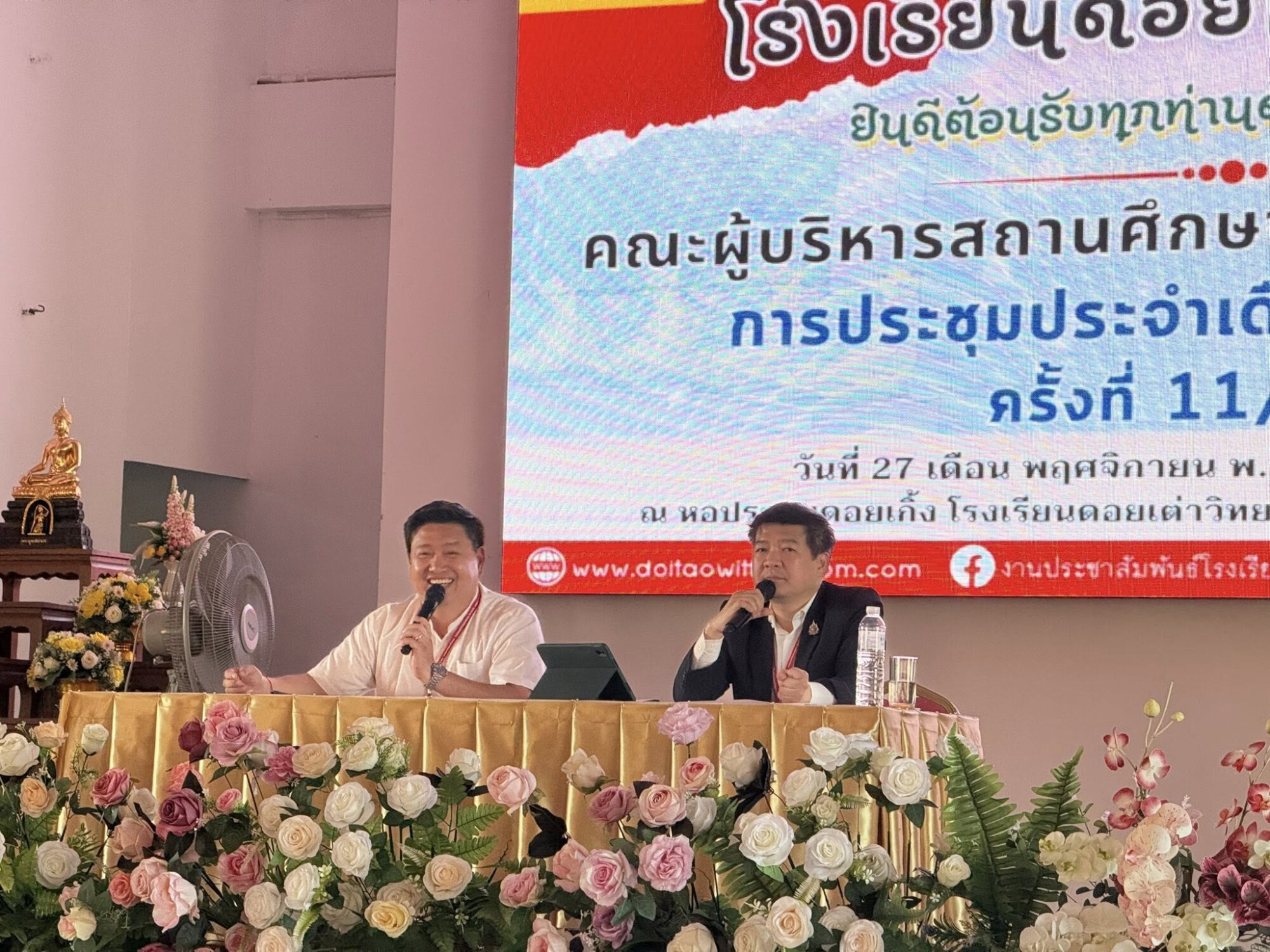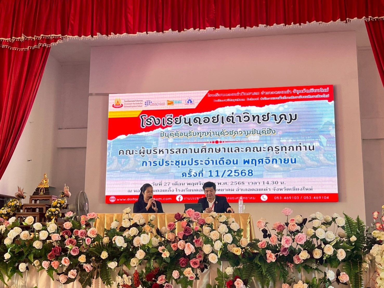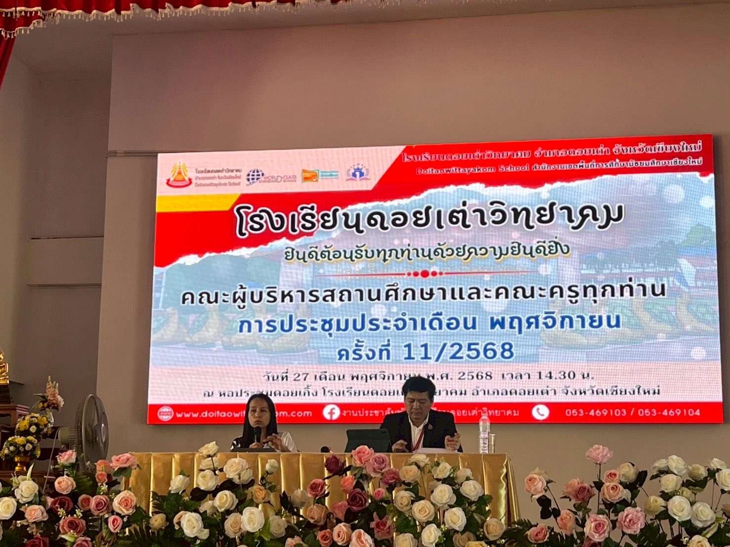 โรงเรียนดอยเต่าวิทยาคม นำโดย นายภานุรังษี คงธนกฤตกร ผู้อำนวยการโรงเรียนดอยเต่าวิทยาคมได้จัดการประชุมคณะครู และบุคลากรทางการศึกษา ประจำเดือนพฤศจิกายน 2568 เพื่อเป็นการติดตามความก้าวหน้าในการดำเนินงานด้านการจัดการศึกษาให้เป็นไปตามวิสัยทัศน์ พันธกิจ และเป้าหมายของสถานศึกษา การประชุมครั้งนี้มีวัตถุประสงค์สำคัญในการทบทวนผลการปฏิบัติงานที่ผ่านมา แลกเปลี่ยนความคิดเห็น ตลอดจนระดมแนวทางในการพัฒนางานด้านต่าง ๆ ของสถานศึกษาอย่างรอบด้าน