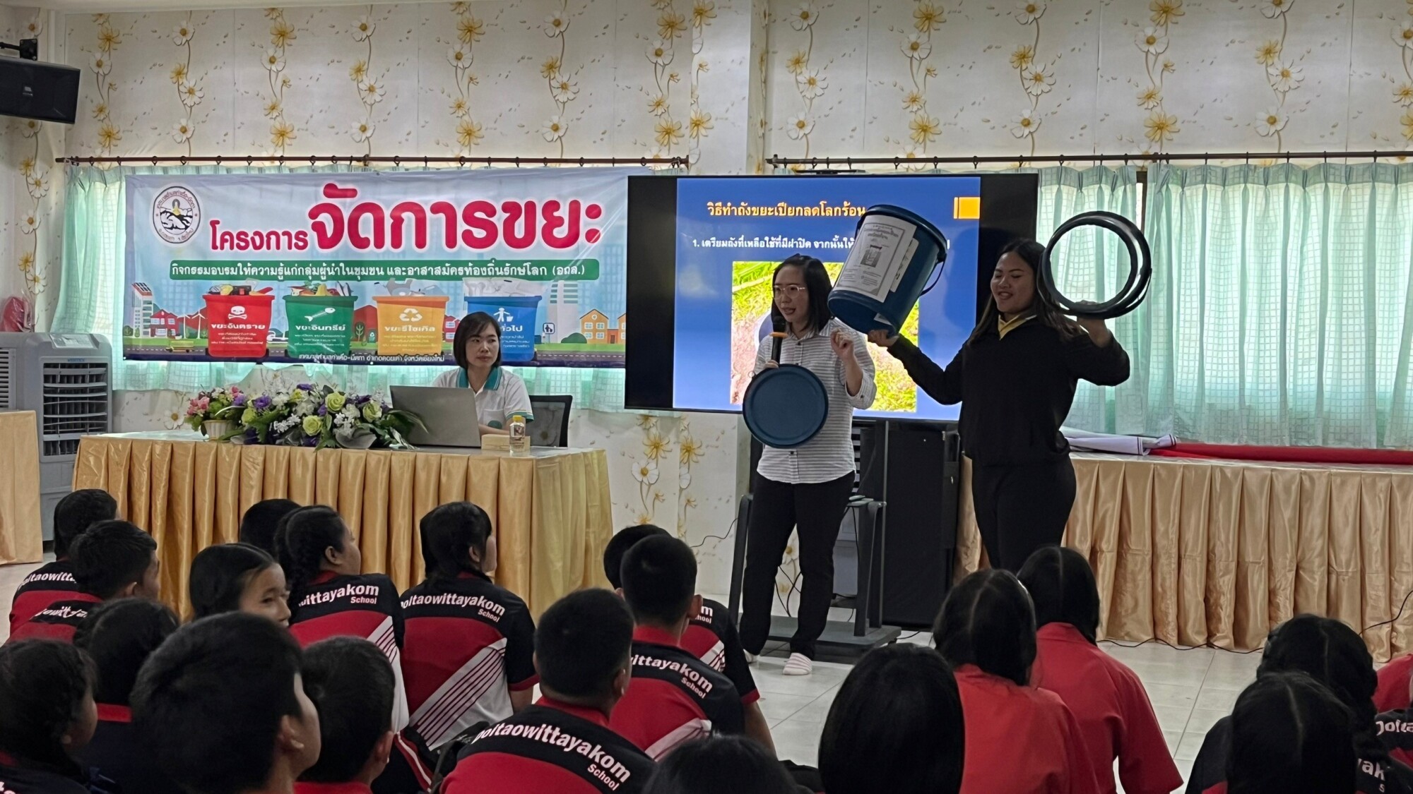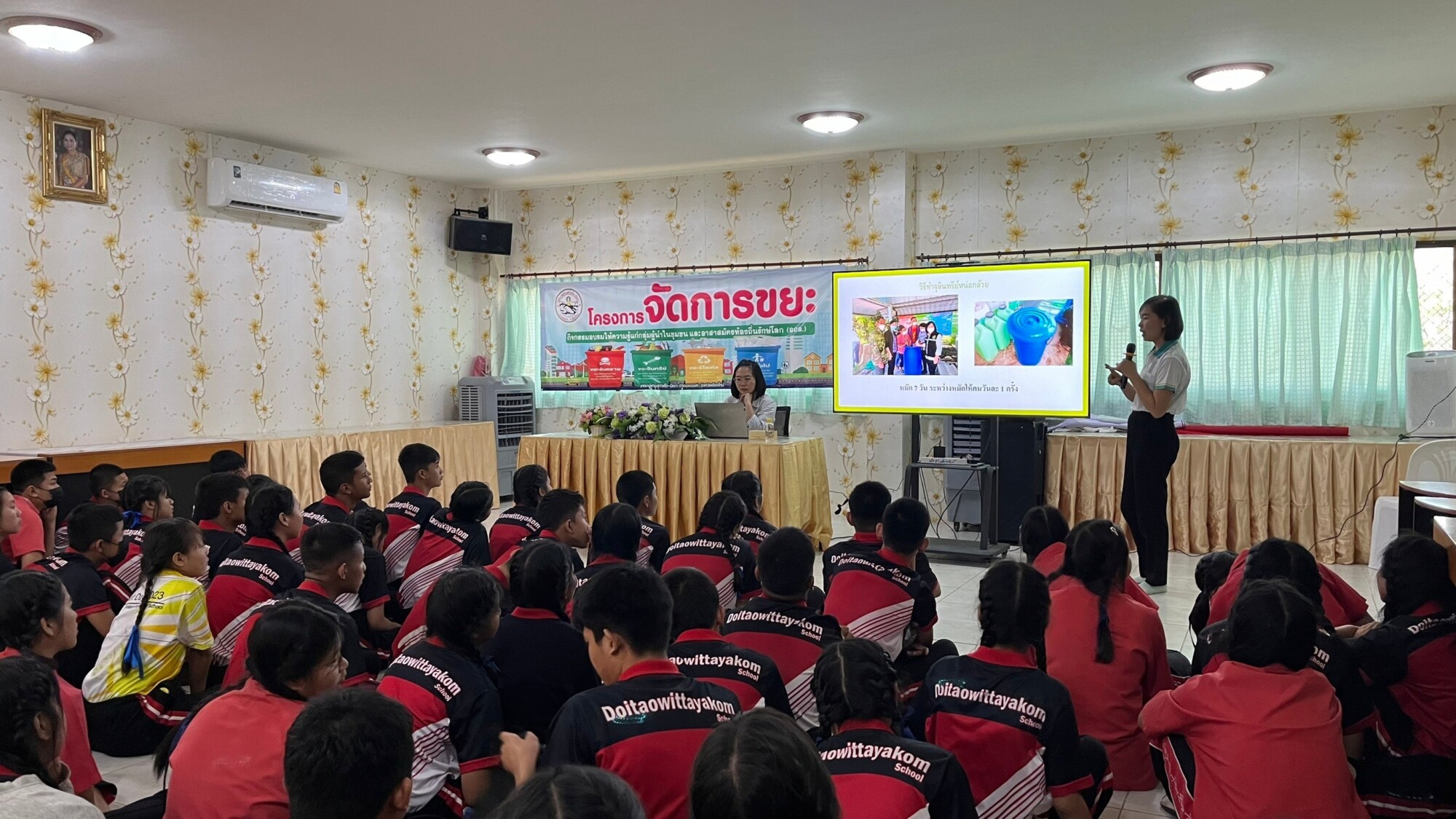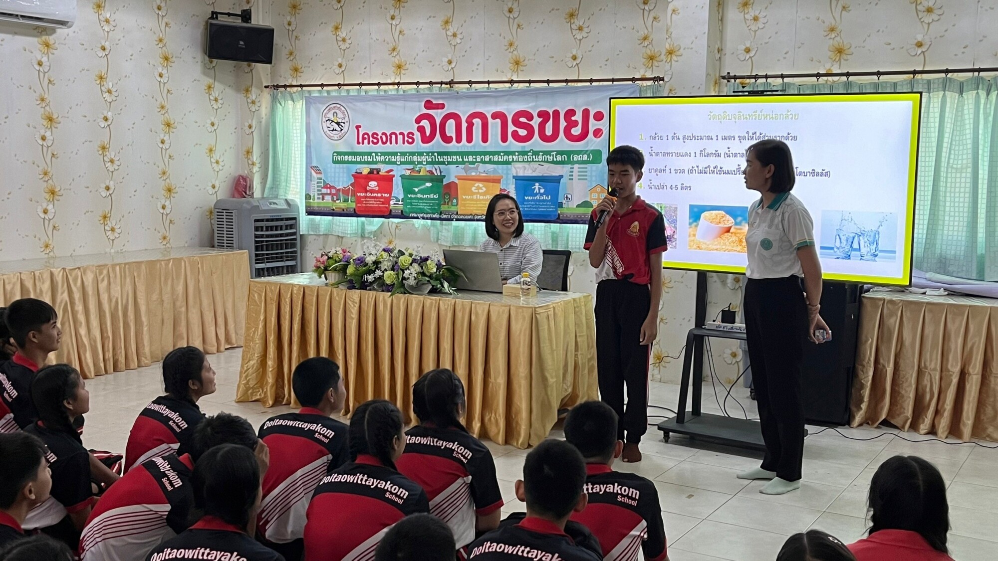 ท่านผู้อำนวยการประพันธ์ บุญวรรณ์ มอบหมายให้ ครูศราวุฒิ เพาะเจาะ ควบคุมดูแลนักเรียนชั้นมัธยมศึกษาปีที่ 2/1 , 2/2 และ 2/3 เข้าร่วมกิจกรรม กิจกรรมอบรมให้ความรู้เรื่องการจัดการขยะมูลฝอย ต่อเนื่องจากกิจกรรมจิตอาสาพัฒนาชุมชน อาสาสมัครท้องถิ่นรักษ์โลก (อถล.) ร่วมกับเทศบาลตำบลท่าเดื่อ-มืดกา เพื่อสร้างความตระหนักและการมีส่วนร่วมของประชาชนในการคัดแยกขยะก่อนทิ้งในครัวเรือนจะช่วยลดปริมาณขยะมูลฝอยและนำวัสดุที่สามารถนำกลับมาใช้ใหม่ได้เข้าสู่กระบวนการรีไซเคิล เพื่อใช้ทรัพยากรธรรมชาติได้อย่างคุ้มค่าและยั่งยืนต่อไป