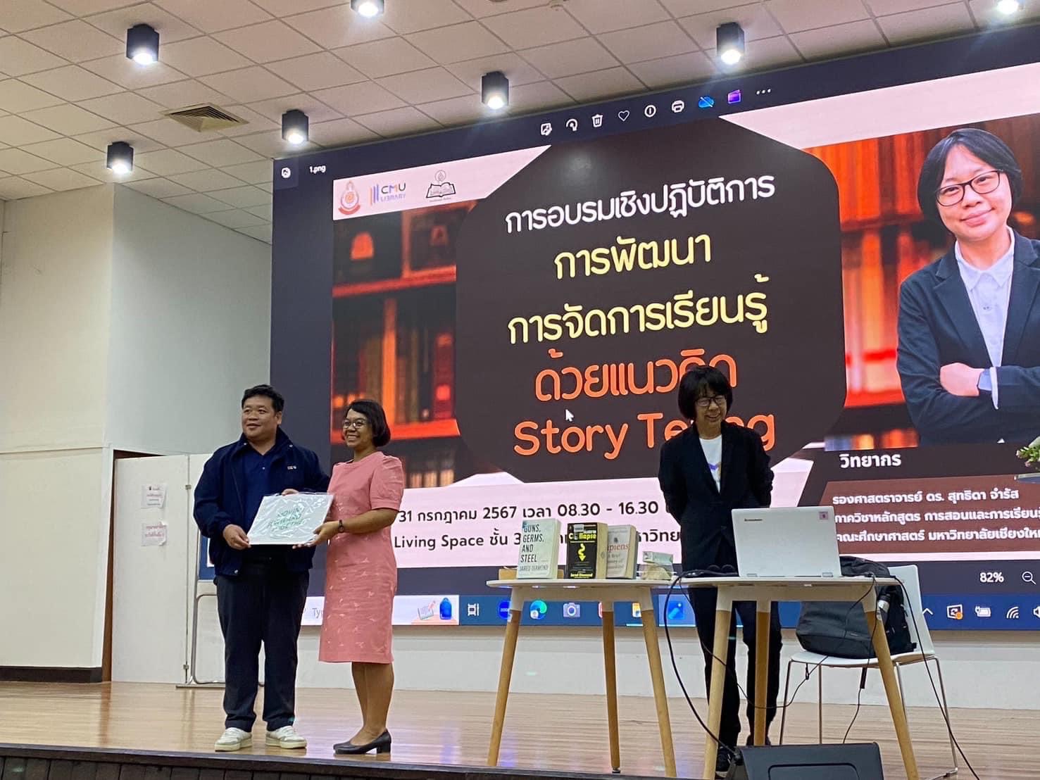 ท่านผู้อำนวยการประพันธ์ บุญวรรณ์ มอบหมายให้ครูนันฑิตา และครูสุภาวดี เข้าร่วมการอบรมเชิงปฏิบัติการพัฒนาการจัดการเรียนรู้ด้วยแนวคิด Story Telling เพื่อส่งเสริมให้ครูผู้สอน มีการส่งเสริมการอ่าน มีการจัดการเรียนรู้ที่ทันสมัยและหลากหลาย ผ่านการค้นหาต่อยอดองค์ความรู้ที่สูงขึ้น ด้วยเทคนิคการเล่าเรื่องอย่างมีกระบวนการและสื่อสารอย่างมีคุณภาพ โดยวิทยากร รองศาสตราจารย์ ดร. สุทธิดา จำรัส ภาควิชาหลักสูตร การสอนและการเรียนรู้ คณะศึกษาศาตร์ มหาวิทยาลัยเชียงใหม่ ณ สำนักห้องสมุดมหาวิทยาลัยเชียงใหม่