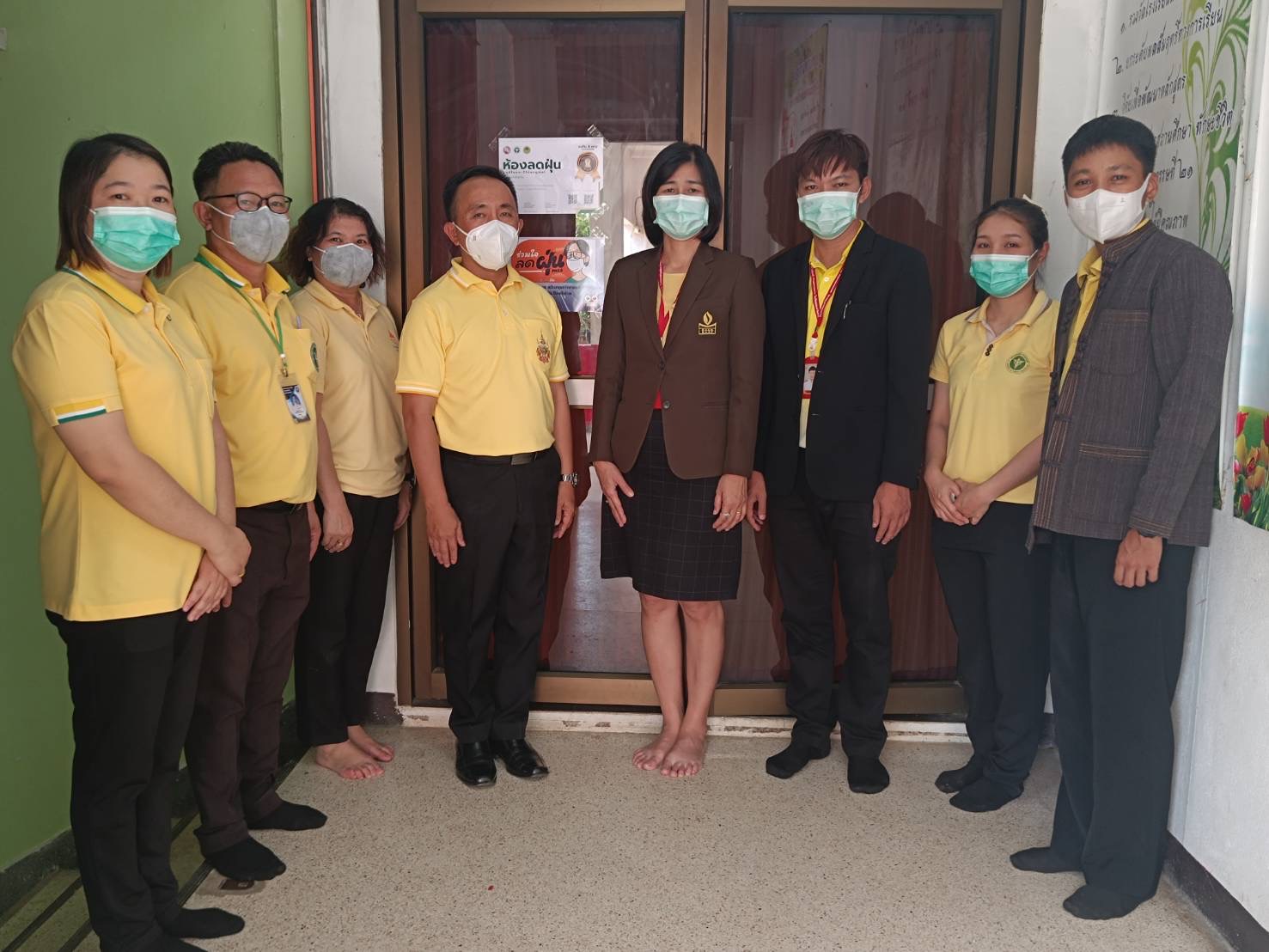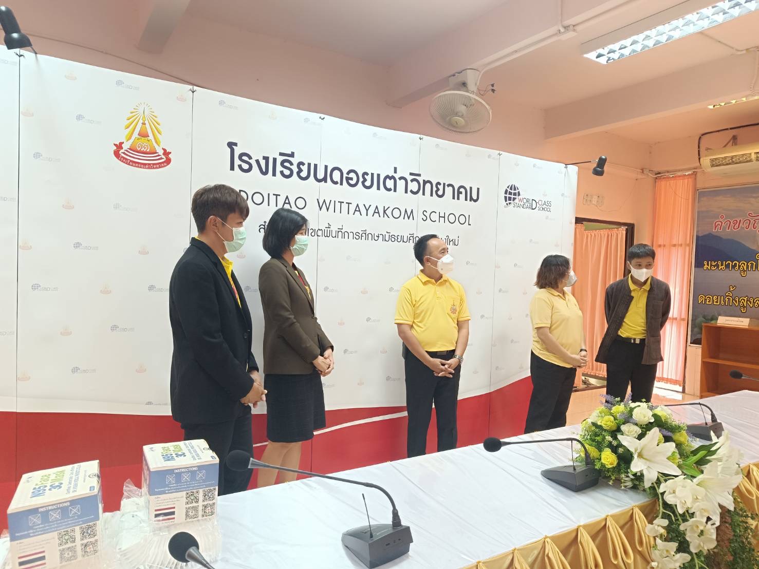ท่านเพิ่มศักดิ์ ศรีสวัสดิ์ นายอำเภอดอยเต่าและสาธารณสุขอำเภอดอยเต่า ในการตรวจเยี่ยมห้องลดฝุ่นพร้อมมอบหน้ากากอนามัยให้แก่บุคลากรโรงเรียนดอยเต่าวิทยาคม