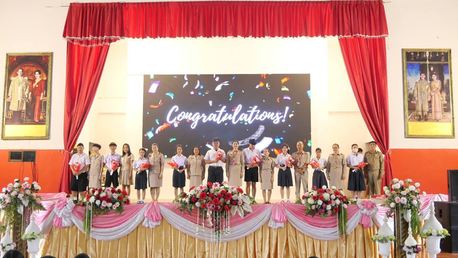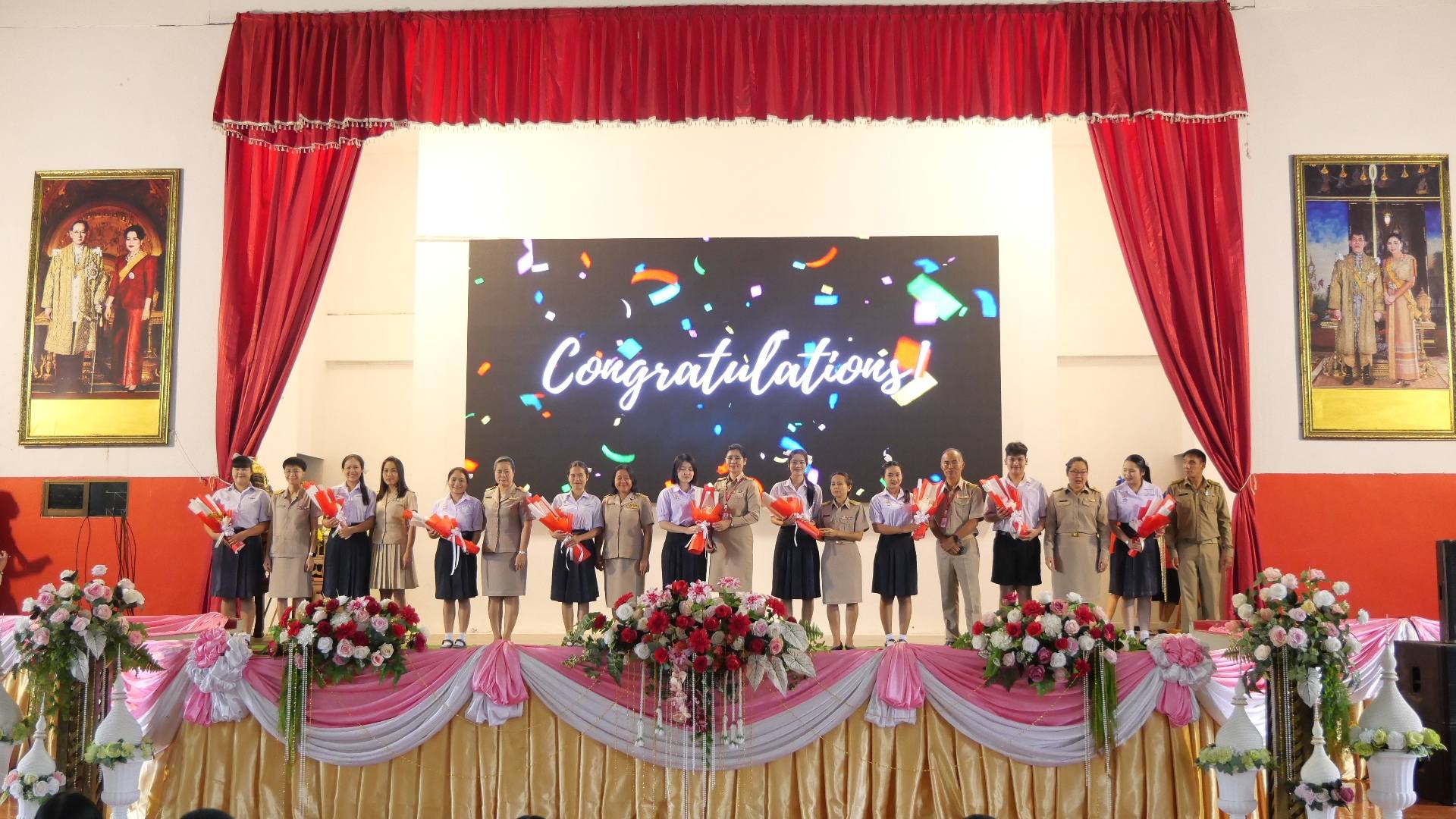 You are currently viewing พิธีมอบช่อดอกไม้และแสดงความยินดีกับนักเรียนชั้นมัธยมศึกษาปีที่ 6