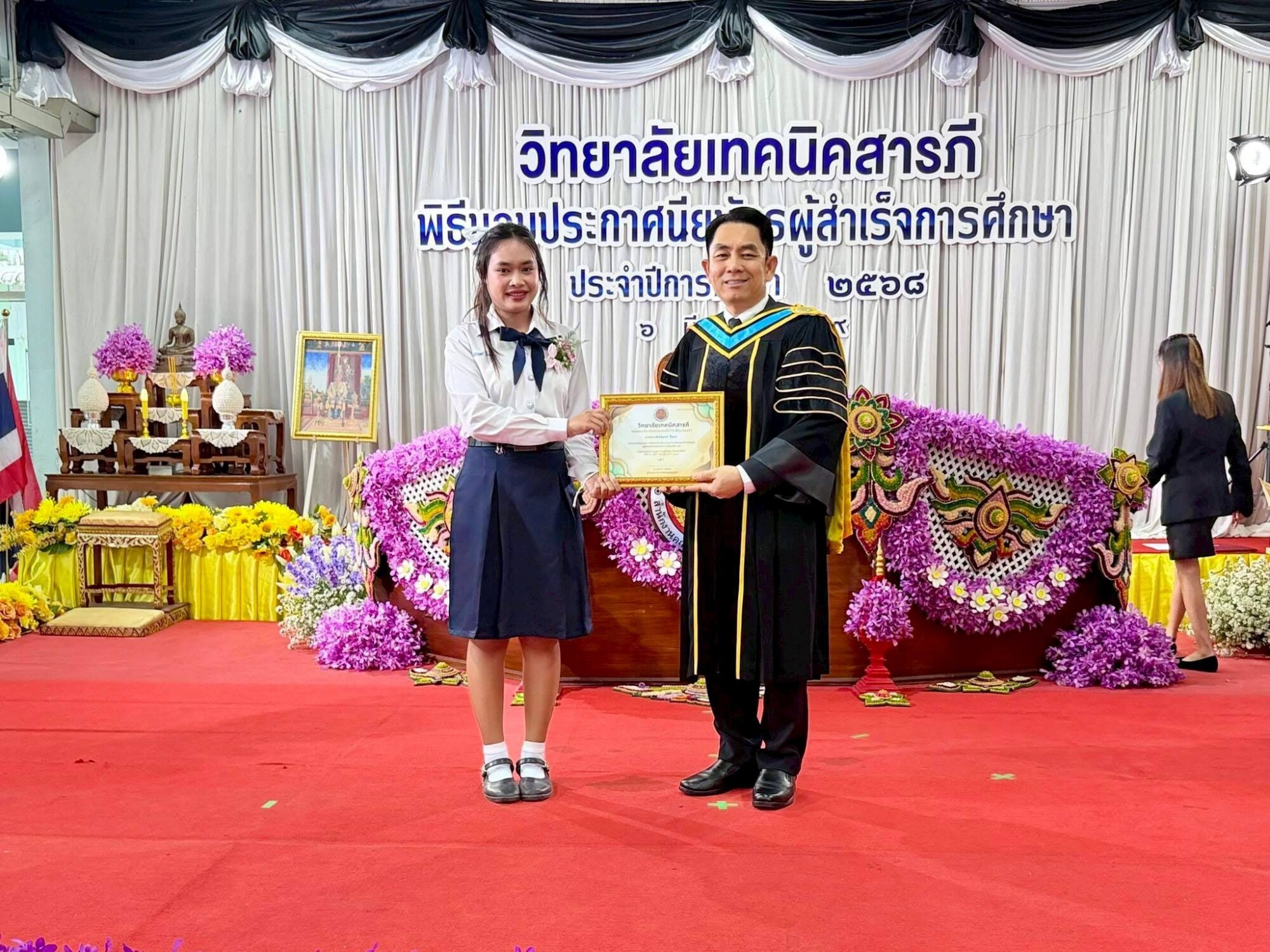 นายภานุรังษี คงธนกฤตกร ผู้อำนวยการโรงเรียนดอยเต่าวิทยาคม ได้มอบหมายให้นางสาววารุณี ธรรมขันธ์ รองผู้อำนวยการโรงเรียนดอยเต่าวิทยาคม และครูผู้สอนหลักสูตรทวิศึกษาโรงเรียนดอยเต่าวิทยาคม นำนักเรียนโครงการเรียนร่วมหลักสูตรอาชีวศึกษาและมัธยมศึกษาตอนปลาย(ทวิศึกษา)แนวใหม่ ระดับชั้น ม.6/3(ปวช.3) สาขา คอมพิวเตอร์ธุรกิจ เข้าร่วมพิธีมอบประกาศนียบัตรผู้สำเร็จการศึกษา ประจำปีการศึกษา 2568 ณ วิทยาลัยเทคนิคสารภี จังหวัดเชียงใหม่