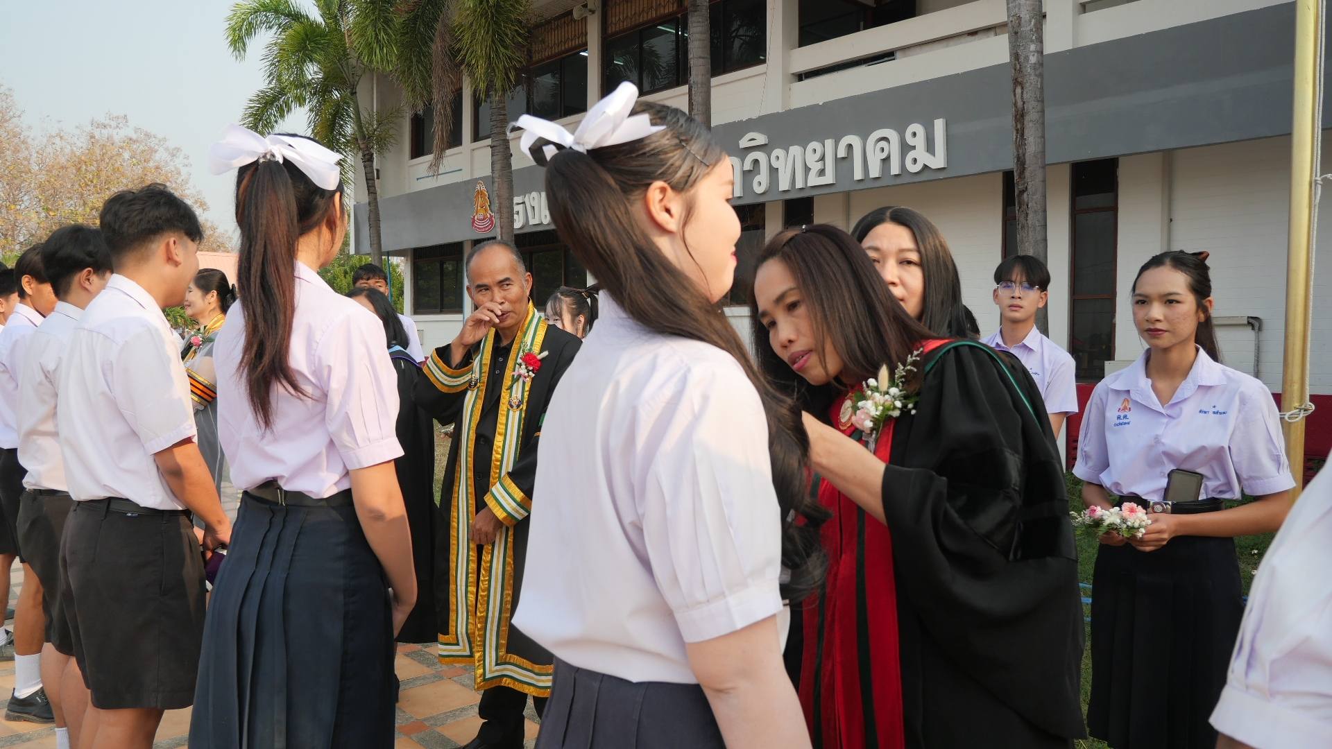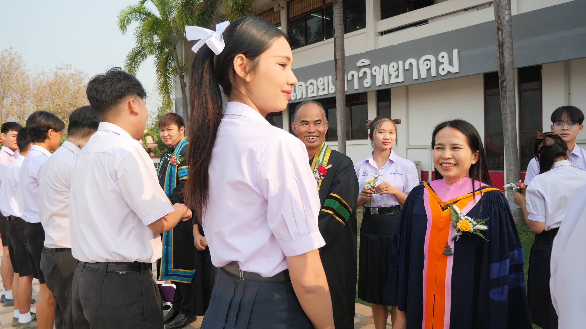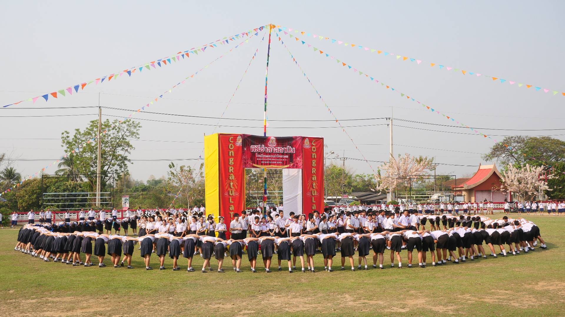 นำโดย ดร.วิทยา พัฒนาเมธาดา ประธานคณะกรรมการสถานศึกษาขั้นพื้นฐานโรงเรียนดอยเต่าวิทยาคม นายอภิชาติ อาชาไนยศักดิ์ ประธานสมาคมเครือข่ายผู้ปกครองโรงเรียนดอยเต่าวิทยาคม พร้อมด้วย นายภานุรังษี คงธนกฤตกร ผู้อำนวยการโรงเรียนดอยเต่าวิทยาคม นางสาววารุณี ธรรมขันธ์ นายเอื้ออังกูร ชำนาญ รองผู้อำนวยการโรงเรียนดอยวิทยาคม คณะครู และบุคลากรทางการศึกษา ร่วมด้วยนักเรียนโรงเรียนดอยวิทยาคม