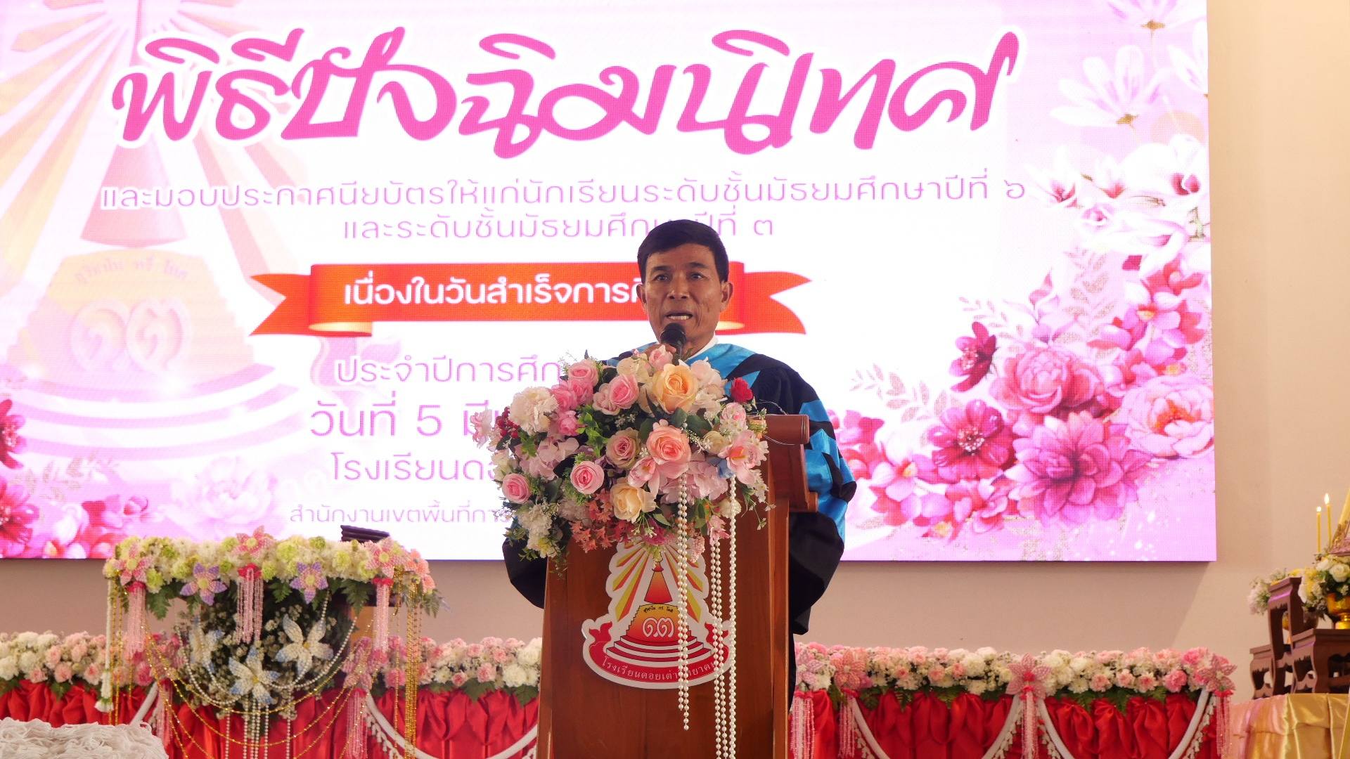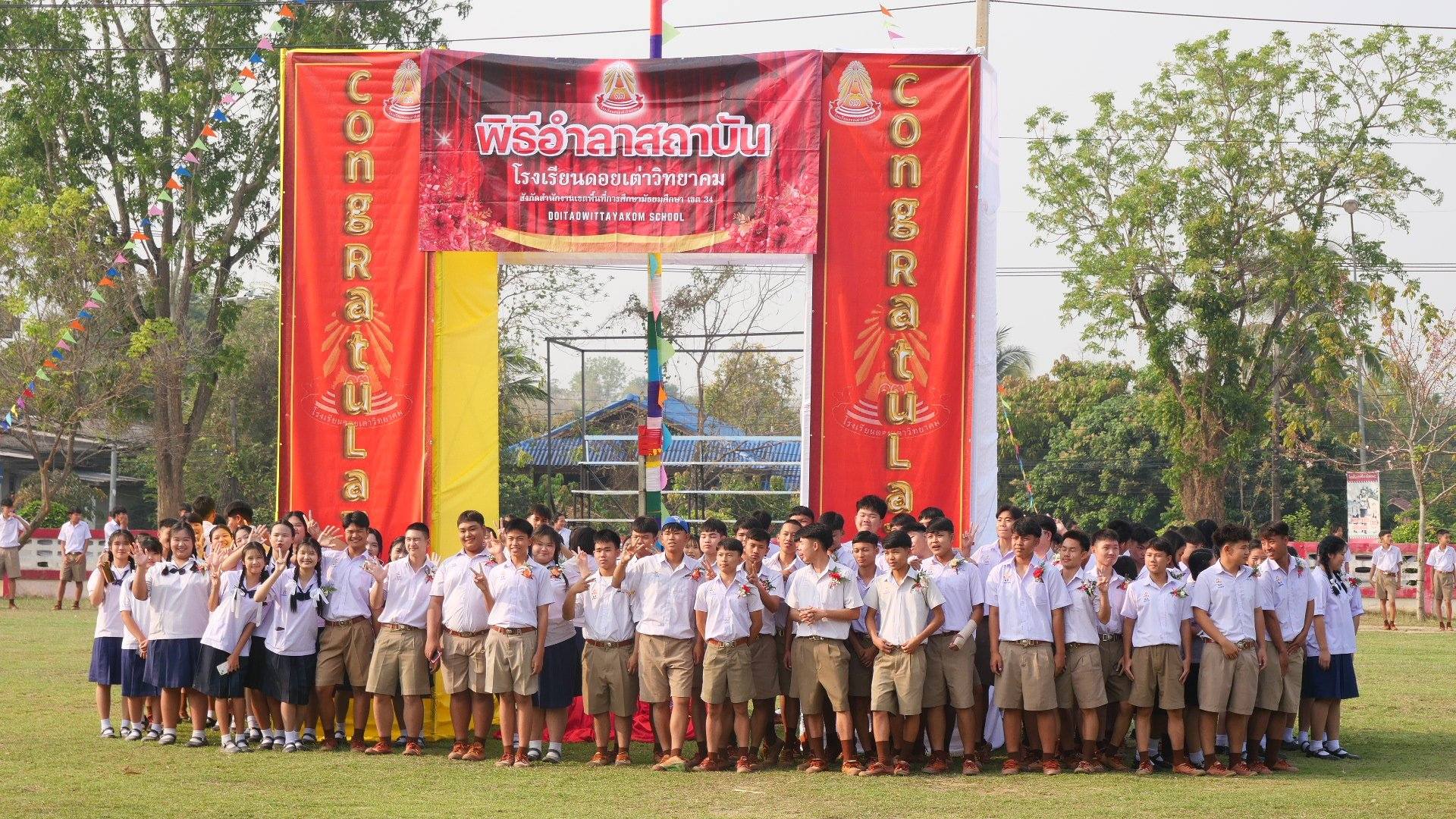 จัดพิธีมอบประกาศนียบัตร กิจกรรมปัจฉิมนิเทศ พิธีบายศรีสู่ขวัญ พิธีผูกข้อมือ และกล่าวให้โอวาทนักเรียนชั้นมัธยมศึกษาปีที่ 3 และ นักเรียนชั้นมัธยมศึกษาปีที่ 6 “รุ่น the sixth sense” โรงเรียนดอยเต่าวิทยาคม