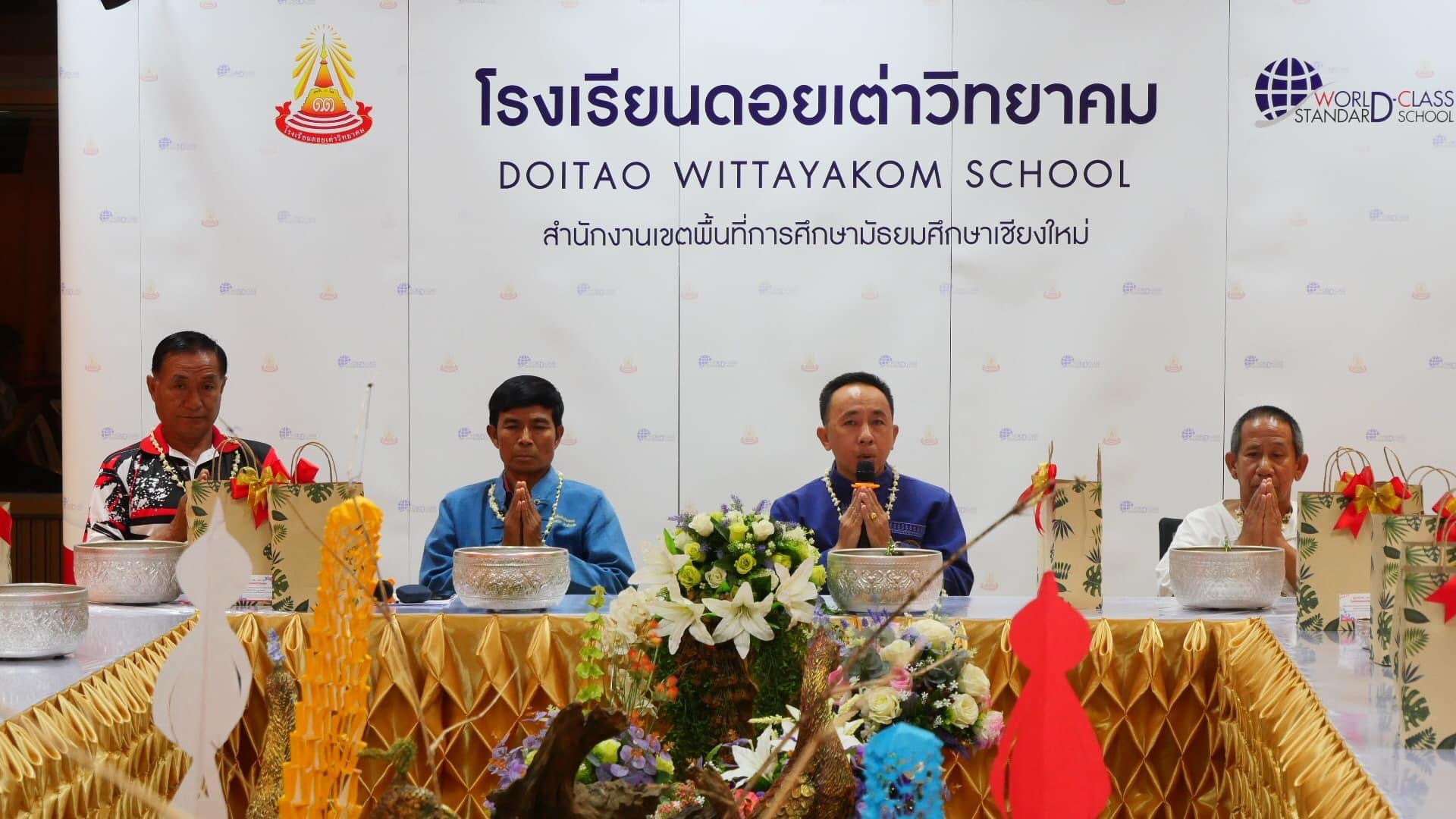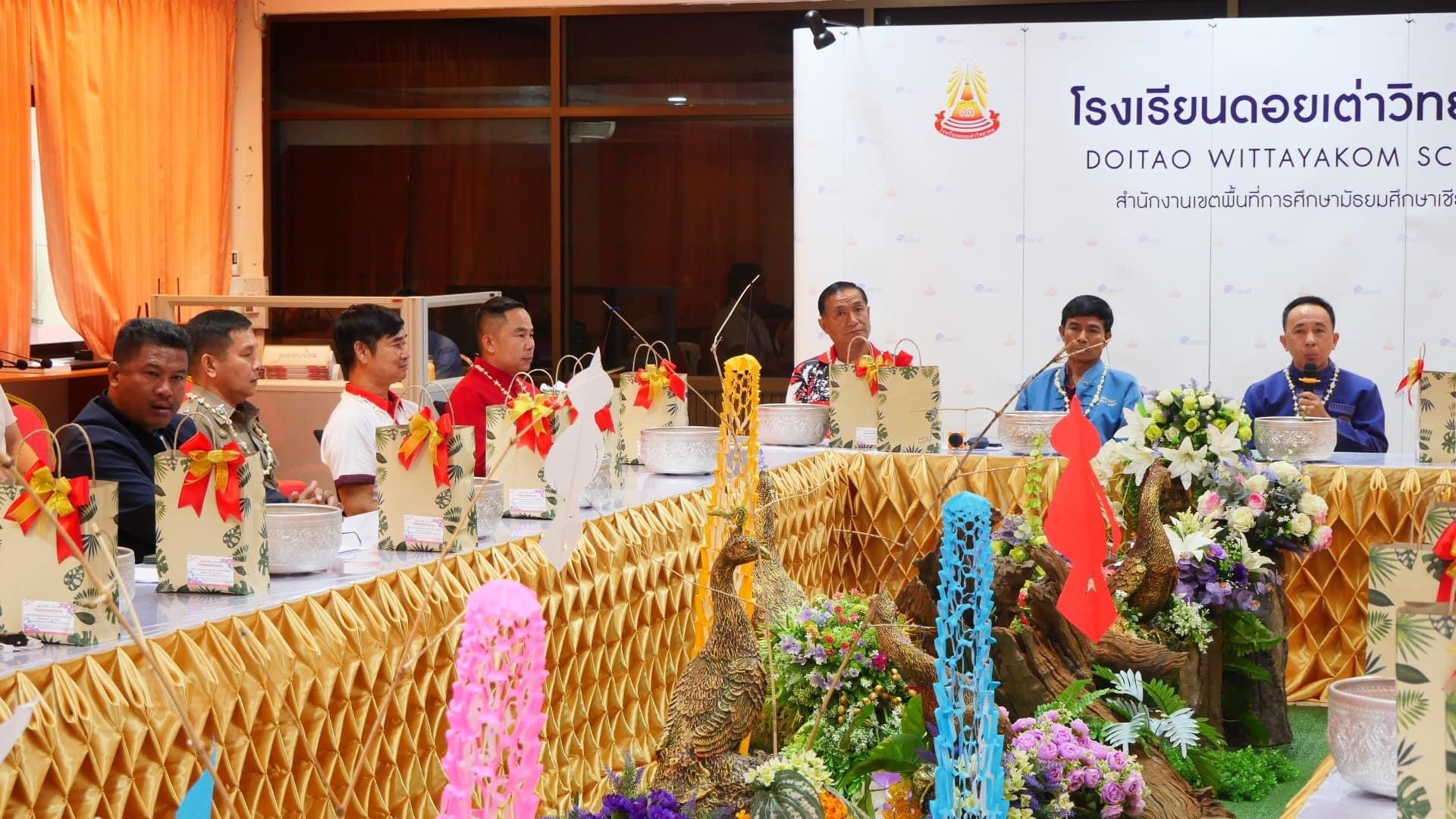 ท่านเพิ่มศักดิ์ ศรีสวัสดิ์ นายอำเภอดอยเต่า พร้อมด้วยหัวหน้าส่วนราชการ คณะกรรมการสถานศึกษาขั้นพื้นฐาน และคณะครูอาวุโสโรงเรียนดอยเต่าวิทยาคม ร่วมเป็นเกียรติรับการคารวะสระเกล้าดำหัวตามประเพณีปี๋ใหม่เมือง ประจำปี 2567 จากคณะครูและบุคลากรทางการศึกษา โรงเรียนดอยเต่าวิทยาคม และคณะกรรมการสถานศึกษาขั้นพื้นฐานร่วมประชุม เพื่อปรึกษาหารือเกี่ยวกับการดำเนินการจัดการเรียนการสอน ก่อนเปิดภาคเรียนที่ 1 ประจำปีการศึกษา 2567 ณ ห้องประชุมสะเลียมหวานโรงเรียนดอยเต่าวิทยาคม