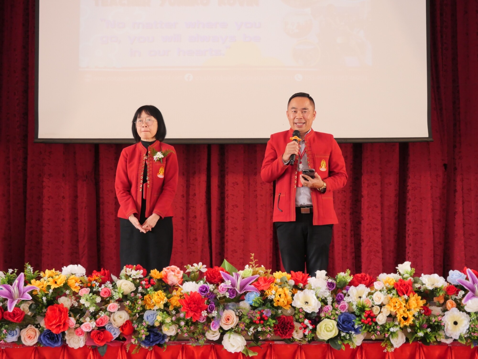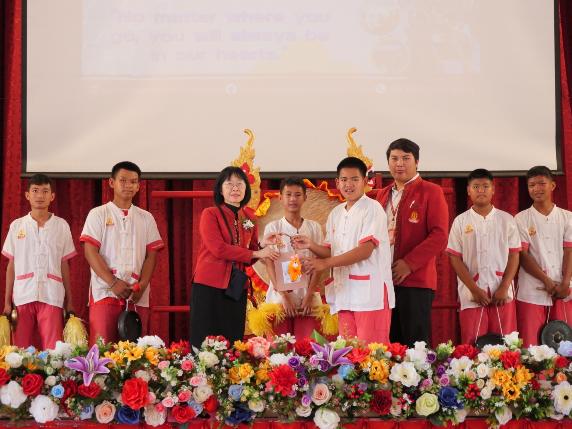ท่านผู้อำนวยการประพันธ์ บุญวรรณ์ รองผู้อำนวยการวารุณี ธรรมขันธ์ รองผู้อำนวยการเอื้ออังกูล ชำนาญ พร้อมด้วยคณะครูและบุคลากรทางการศึกษา และนักเรียนโรงเรียนดอยเต่าวิทยาคม จัดพิธีอำลาให้ Teacher Yumiko ครูอาสาสมัครที่ได้ให้เกียรติในการเป็นครูผู้สอนภาษาอังกฤษด้วยหัวใจของจิตอาสา ให้ความรู้ ความสนุกและแรงบันดาลใจที่ยิ่งใหญ่ในการเรียนรู้ภาษาอังกฤษแก่คณะครู บุคลากรและนักเรียน ตลอดระยะเวลา 2 ปีการศึกษา ณ โรงเรียนดอยเต่าวิทยาคม