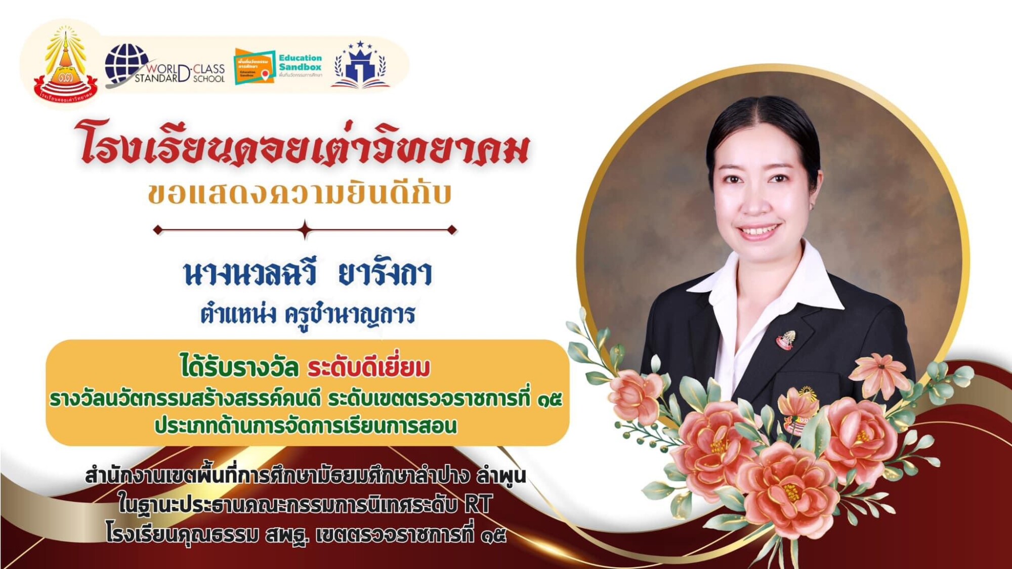 ♦️🏅 ได้รับการคัดเลือกรางวัล 10,000 คุรุชนคนคุณธรรม และนวัตกรรมสร้างสรรค์คนดี ระดับดีเยี่ยมด้านการจัดการเรียนการสอน
