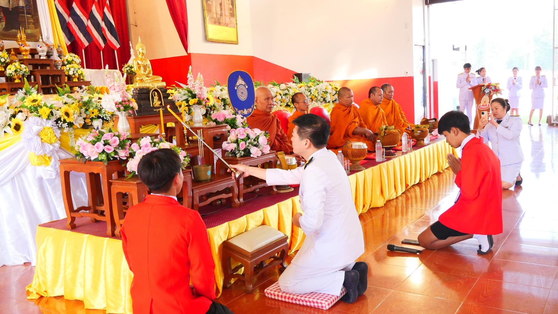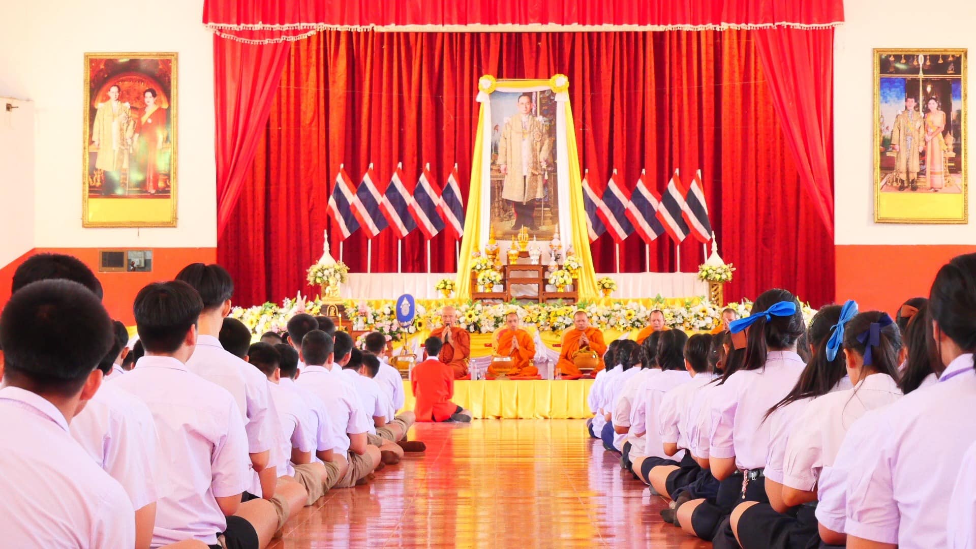 You are currently viewing โรงเรียนดอยเต่าวิทยาคม จัดพิธีเจริญพระพุทธมนต์ ทำบุญตักบาตรถวายพระราชกุศล และพิธีวางพานพุ่มดอกไม้ถวายราชสักการะ เนื่องในวันคล้ายวันพระบรมราชสมภพ พระบาทสมเด็จพระบรมชนกาธิเบศร มหาภูมิพลอดุลยเดชมหาราช บรมนาถบพิตร วันชาติ และวันพ่อแห่งชาติ ๕ ธันวาคม