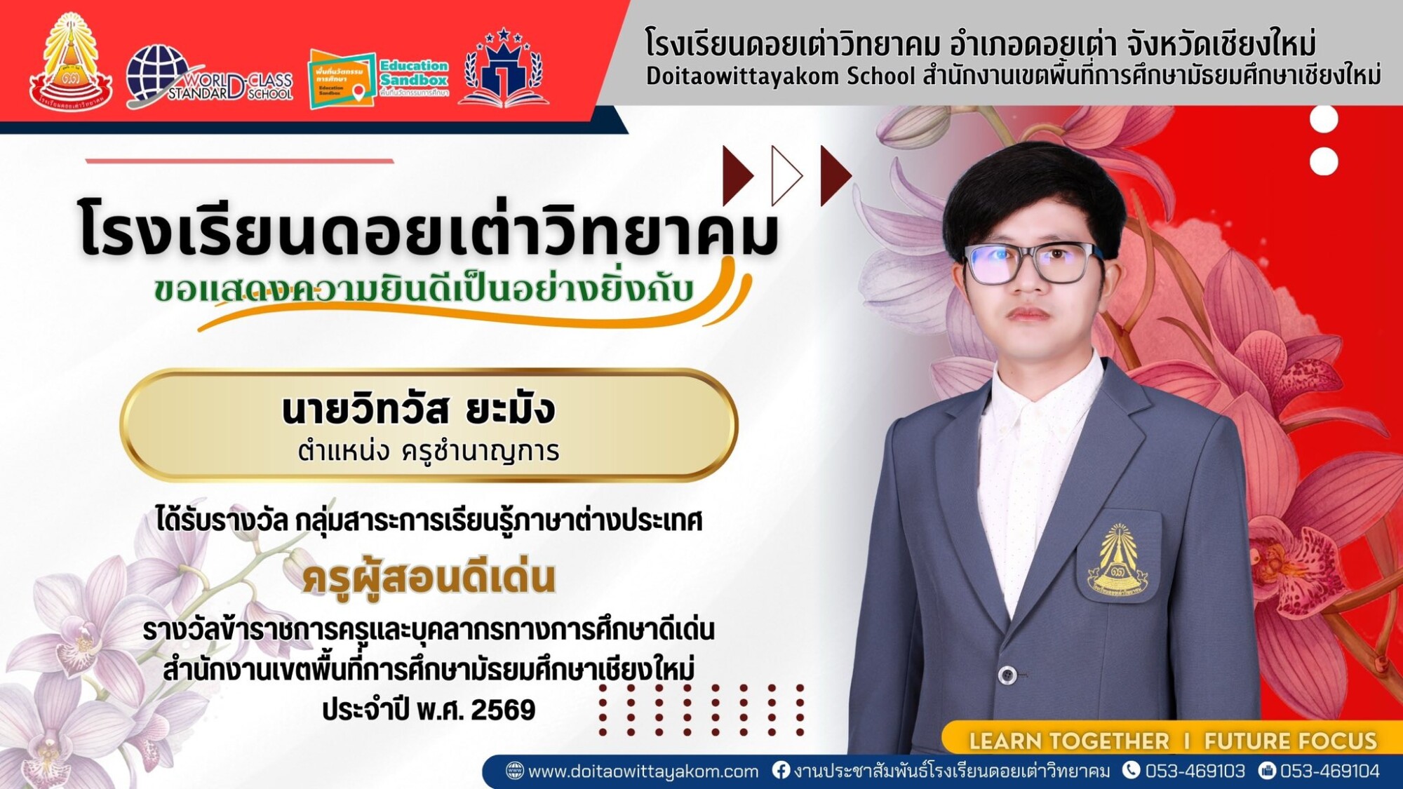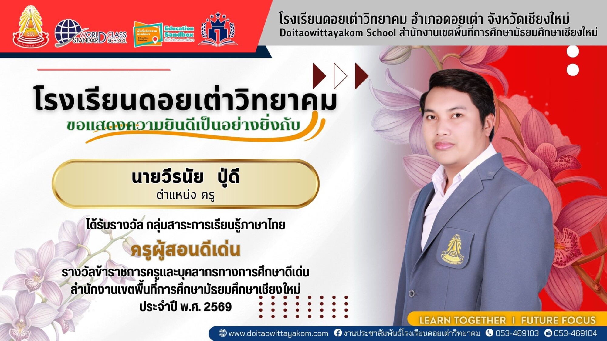 โรงเรียนดอยเต่าวิทยาคม ขอแสดงความยินดีเป็นอย่างยิ่ง