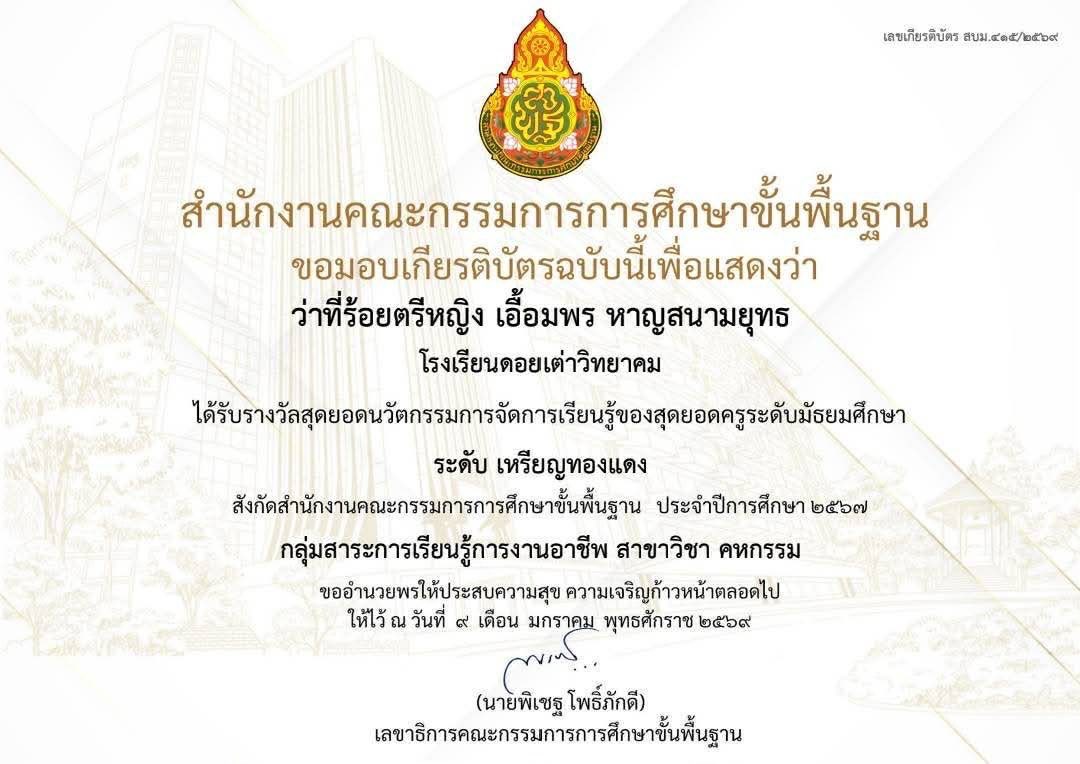 รางวัลสุดยอดนวัตกรรมการจัดการเรียนรู้ของสุดยอดครูระดับมัธยมศึกษาระดับ เหรียญทองแดง